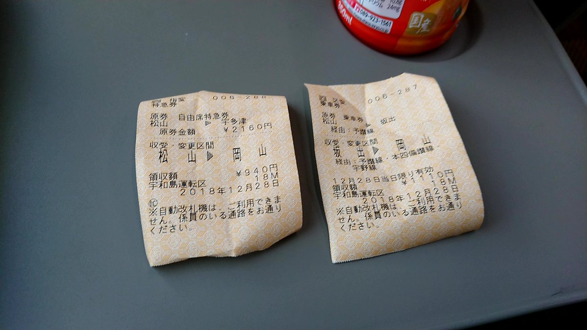 もともと、宇多津で[しおかぜ]から[いしづち]に乗り継ぎ、坂出で[マリンライナー]に乗る予定だったのが、しおかぜの遅延により岡山までの乗車に変更しました。